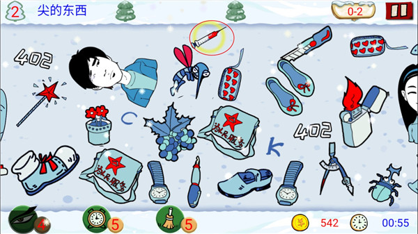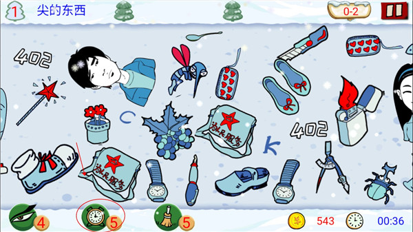 关卡中可点击时钟图标增加时限,无需反复寻找。