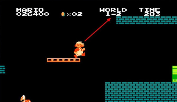 1、玩家通关1-1关卡后,到达1-2关卡时,在借助第二个移动梯走最上方的路。