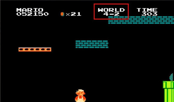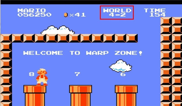 6、玩家爬上藤蔓到达4-2关卡的尽头之后,会再次出现3个水管入口,分别表示第6,第7和第8关,玩家选择8这个入口进去。