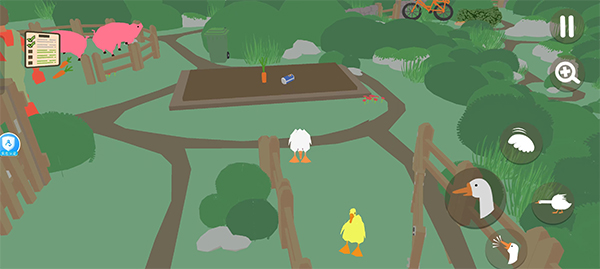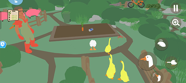 捣蛋鹅手游是以农场为背景的恶搞趣味动作冒险游戏,画风走的是简约漫画风,搭配3D自由视角,让玩家从各个角度感受作妖的乐趣。故事发生在一个原本宁静的小村庄,玩家是只放飞自我的大白鹅,干的事儿就是到处添乱、制造混乱,比如偷园丁的钥匙、把工具藏起来、用洒水器“帮人洗澡等等,可以说是一只满地图搞事情的鹅。捣蛋鹅手游融合了潜行以及沙盒元素,玩法自由,内容也非常丰富。