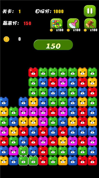 3、点击紧挨在一起的相同颜色方块,消除获得积分。