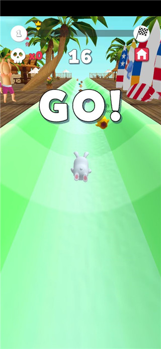 4、玩家需要控制自己的角色避免碰到周围的障碍物,并尽力冲刺成为第一名。