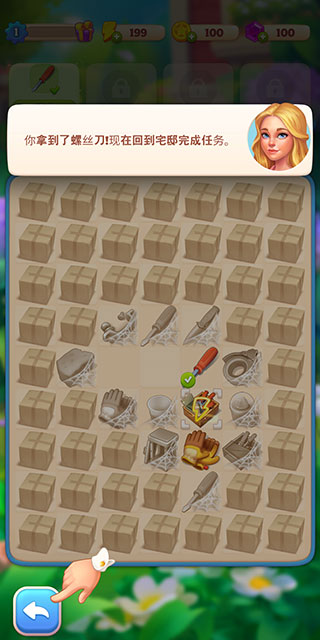 5、现在已经成功取得了任务需要的物品,点击左下角按钮返回主界面。
