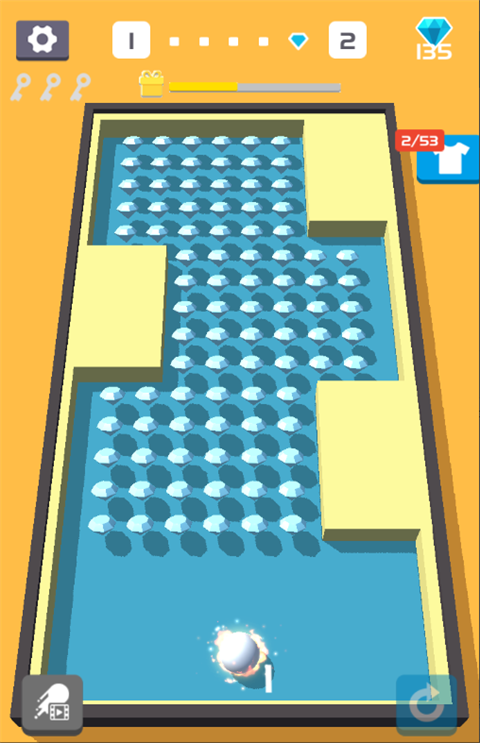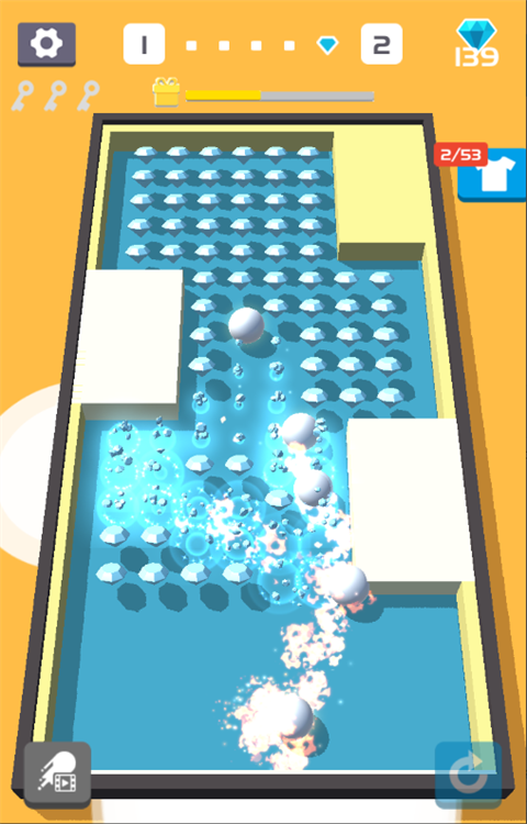 滑动屏幕控制小球朝向,对准障碍展开攻击。