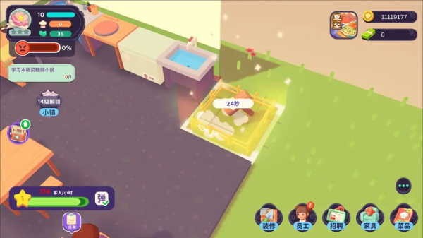 紧跟主线任务提示,快速掌握机制,加速餐厅等级成长。