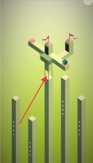 依照红色箭头指示的方向,在立体结构中寻找正确路径继续游戏。