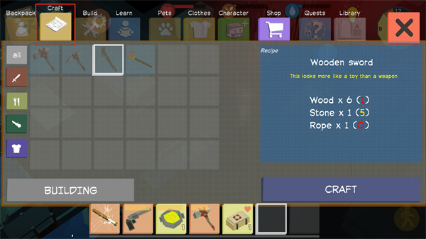8、点击Craft来制作高级合成道具,制作道具需要收集材料才能进行制作。