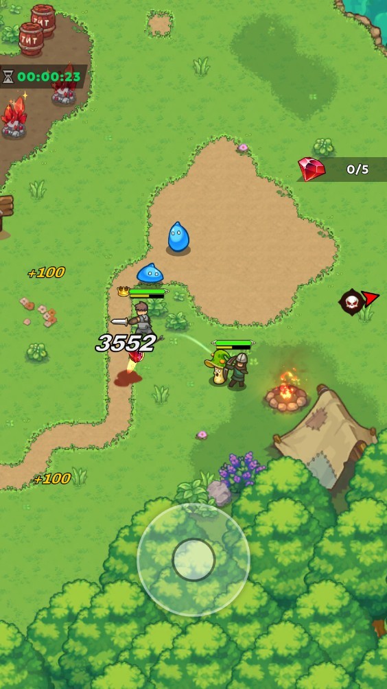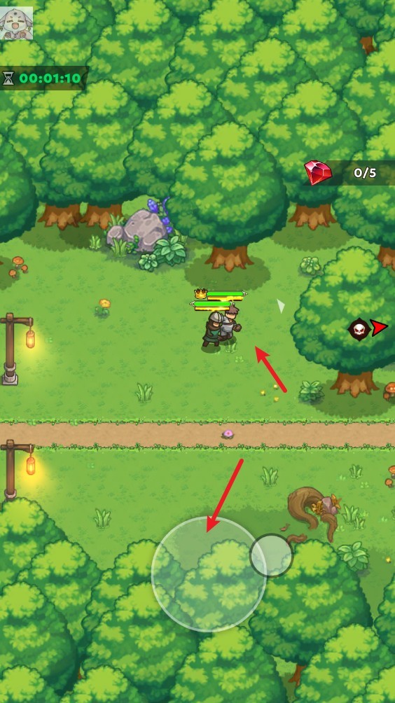 进入游戏后,通过虚拟摇杆掌控主角走向。