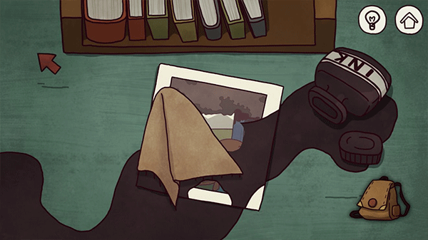7、玩家向左进入卧室,使用【抹布】擦干净相片上的污渍,需记住照片中眼睛里的符号。