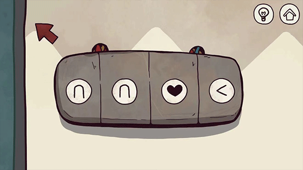 8、玩家返回客厅,对照照片中眼睛里的符号,逐渐调整门右边的密码锁,锁解开后开门出去。