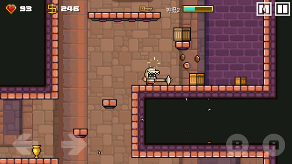 游戏的操作不是很难,在游戏的屏幕左下方有两个方向键控制左右。B键是攻击键,A键是起跳键,长按是下跳。注意不要被怪伤到。