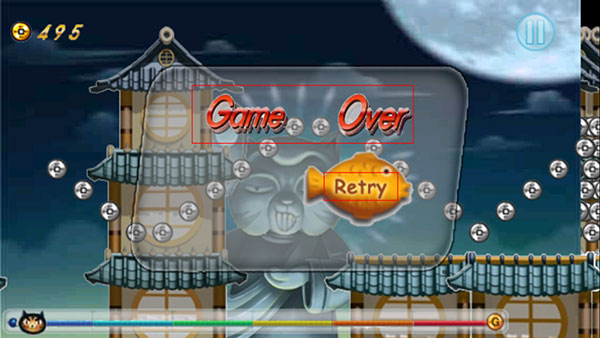 3、点击屏幕一下时,让忍者猫成功跳起。