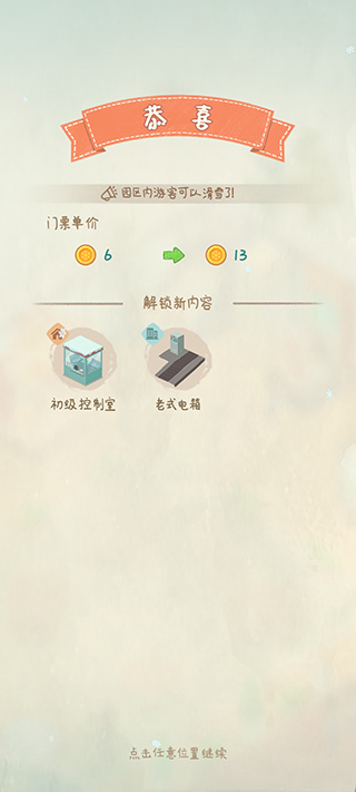 6、不断升级滑雪场的大门,让玩家能赚得盆满钵满。