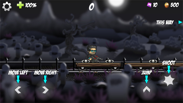 2、进入游戏后,有左右移动、跳跃、攻击共4个按键,而玩家需要控制特工击败所有敌人。