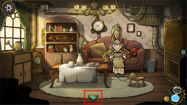 5、玩家在客厅会跟母亲触发剧情,母亲让玩家把做好的曲奇饼拿到楼上给妹妹,点击屏幕下面的返回按钮并回到大厅。