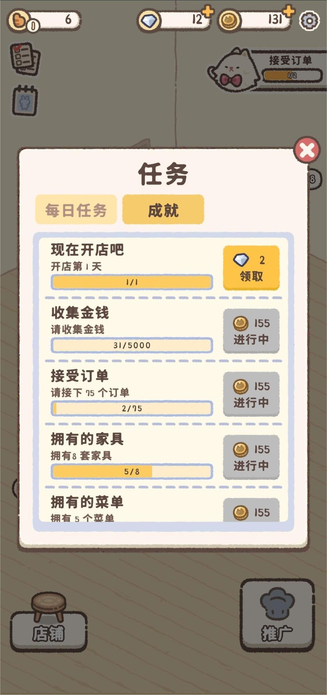 3、一步步完成右上角的引导与左上角的任务图标,就可以慢慢发展扩大店面