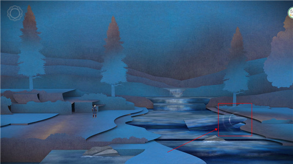3、在图中有闪光的地方我们都可以点击将其反过来,这个场景将闪光的地方翻起来便可以成为桥,然后进入走过去进入下一个场景。