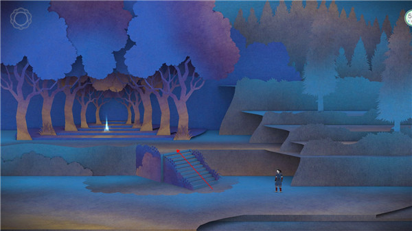 2、双击屏幕后向右边走,可以发现下方有河流过不去的。然后沿着屏幕的最下方进行滑动便可以拉出风铃,然后狼会趴下。(后面有狼的地方我们先要找到和一样的风铃)随后便会出现一座桥,从桥上走过去,来到下一个场景。