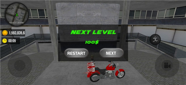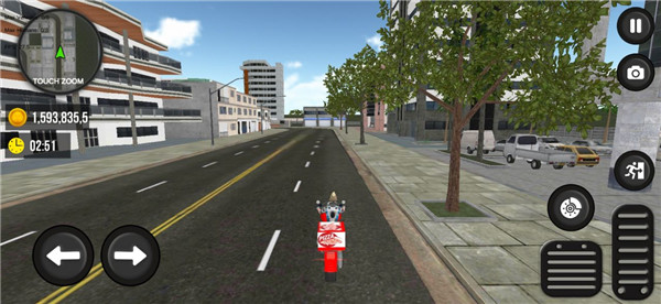 4、当玩家上车之后就可以开始操控摩托车,有多个按钮可以控制摩托。