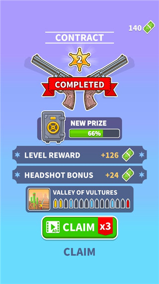 西部狙击手安卓版,英文名为Western Sniper,是以狂野西部为时代背景的3D卡通风格射击对战手游。西部狙击手安卓版下载完成后,玩家将在荒凉的沙漠中扮演一位英勇的牛仔,手持左轮手枪,对抗潜藏在各个角落的敌人。游戏操作简单,但节奏快速紧凑,精准瞄准和果断射击是取胜的关键。玩家通过不断完成关卡挑战,还能解锁更多武器与道具,在枪林弹雨中体验西部枪手的快意与刺激。