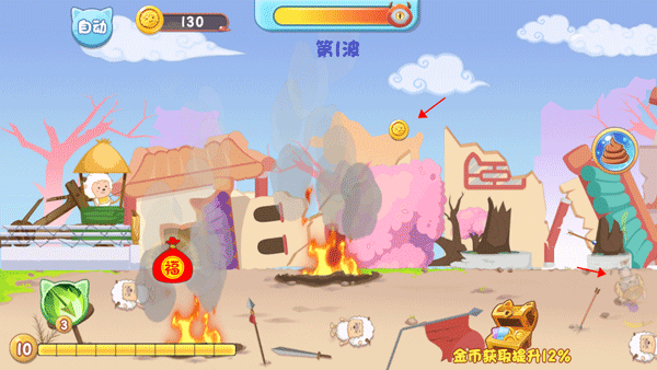 1、开场由村长指导基础操作,玩家将以懒羊羊视角参与初战防御。