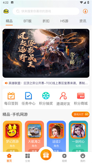 2、在顶部导航中选择H5游分类,直达轻量游戏区。