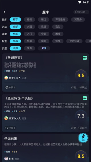 轻量烧脑的趣味设定替代传统剧本杀,题材广泛,适合各类玩家。