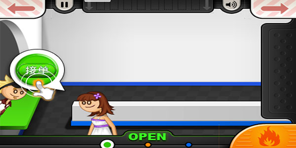 1、首先,来到汉堡店铺的点单台页面,点击左侧的绿色接单按钮,在这里接受顾客点单。