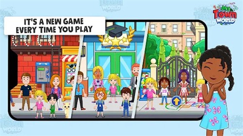 我的城镇世界手机版(My Town: World)是模拟经营小镇的开放世界游戏,专为儿童设计。玩家可以自由创造故事,和玩具屋里的各种物品互动。游戏没有剧情和对话,玩法轻松自由。玩家可以探索厨房做饭、去孩子房间、打开电视,给角色换衣服或喂食,甚至洗澡和打扮。我的城镇世界手机版的房间里的每个物品都能触摸、移动和玩耍,像准备水果冰沙、烤面包等,乐趣无限,随玩家发挥。