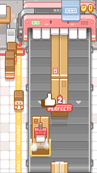 3、跳到纸箱上在去包装纸箱,包的越多得分就越高。