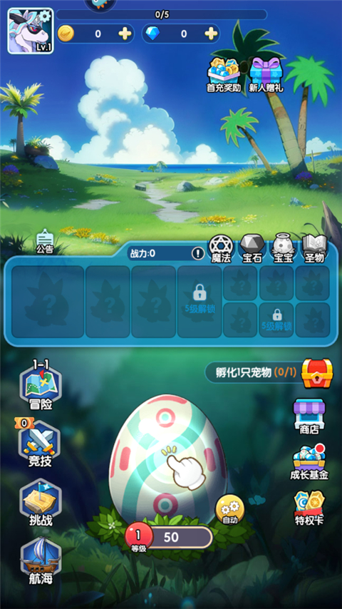 1、游戏开局即获得一枚宠物蛋,从此开启个性旅程。