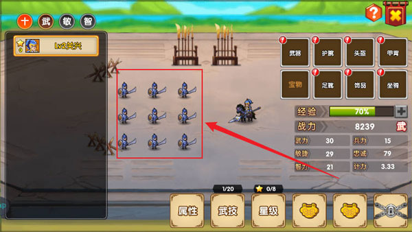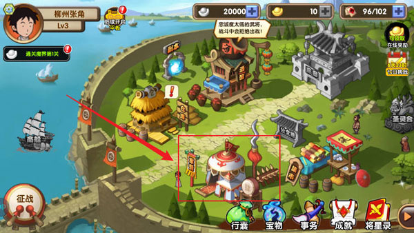 1、玩家需要点击地图上的军营建筑,进而进入军营。