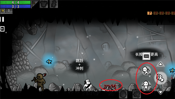 3、旁边还有跳跃和冲刺按钮,可以帮助玩家进行移动。