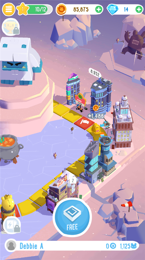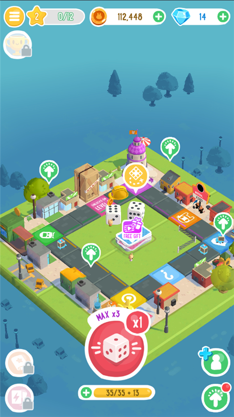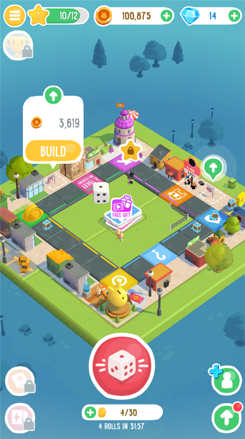 5、直到探索新世界棋盘一圈后,就会回到自己的棋盘中,玩家可以利用金币升级自己的建筑物。