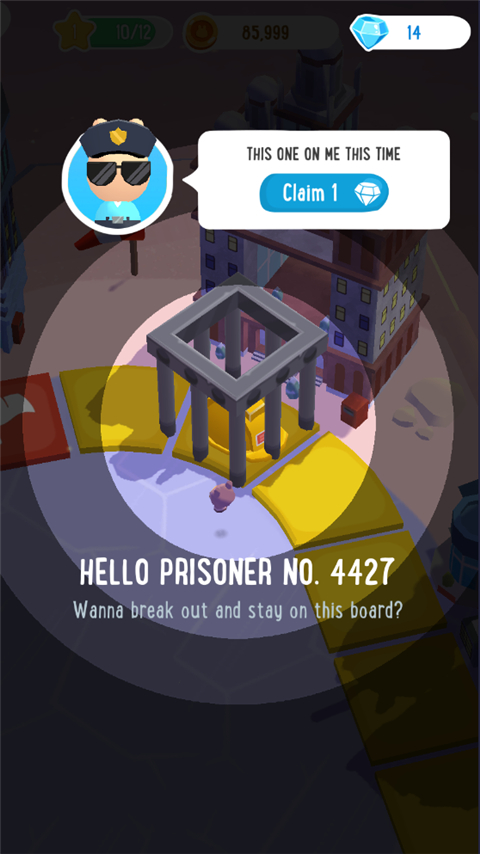 4、如果玩家获得的掷骰子,结果落在警察局就会被抓捕,此时就需要支付钻石才能被释放。