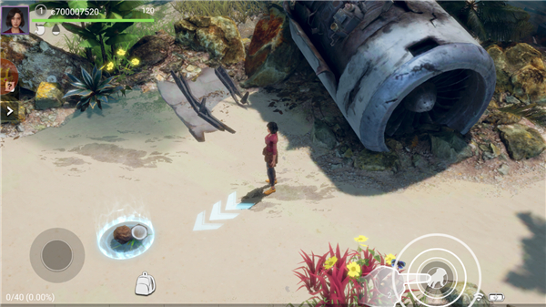 7、继续跟着虚拟图标行走,当碰到椰子,点击拾取,椰子会自动进背包。
