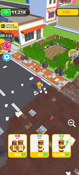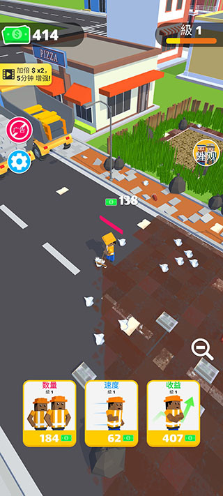 4、通过点击画面下方的按键,还可以加快工人的清理速度,增加工人数量或提升更多收益。