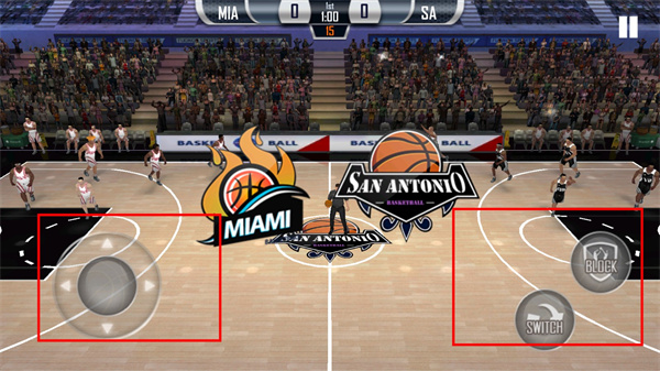 4、游戏中左边则是移动,右边则是传球和灌篮等。