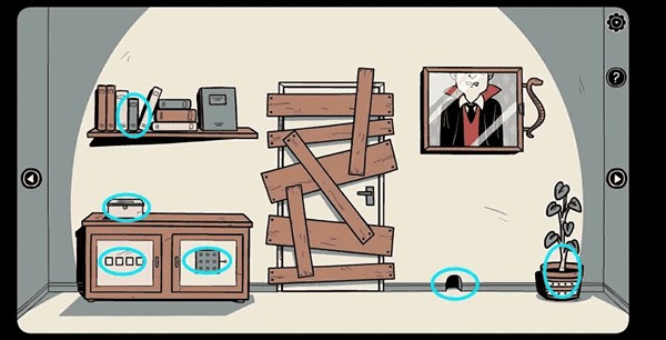 15、观察吸血鬼对其反应后出现的提示,然后按顺序输入并打开相框后面的保险箱,然后拨动保险箱里的开关打开大门,出去后游戏结束。