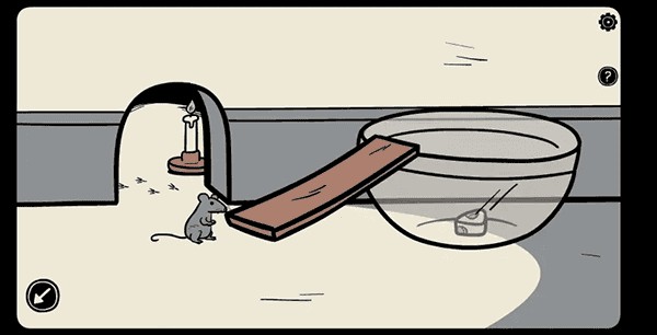6、组合火柴和蜡烛并将其放入老鼠洞,然后用雨伞将洞里的「电源线插头」拿出来。接着用绝缘胶布修好电视机的电源线,打开电视机后将录像带放入录像机并点击播放键。