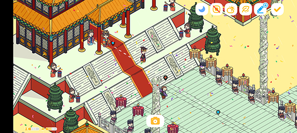 4、玩家们可以点击右上角的“相机”以改变整个主题世界的天气。