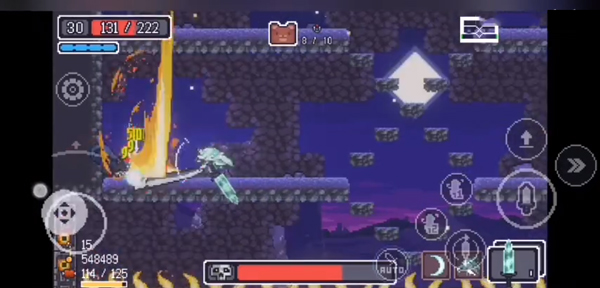 4、游戏采用了横版移动操作,操控屏幕左侧的摇杆以控制角色移动,点击屏幕右侧的按键进行攻击、跳跃和冲刺。