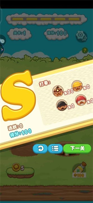 4、玩家只要打中地鼠就可以得分哦,小心其中出现的炸弹哦。