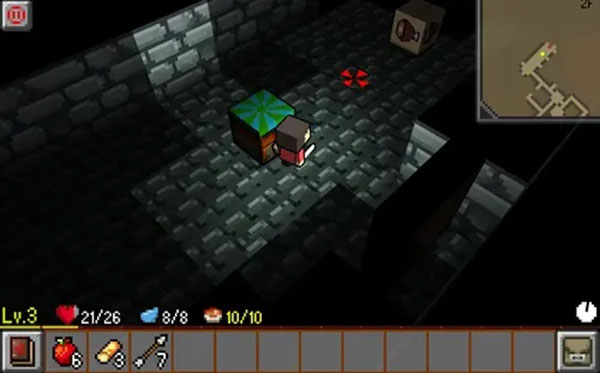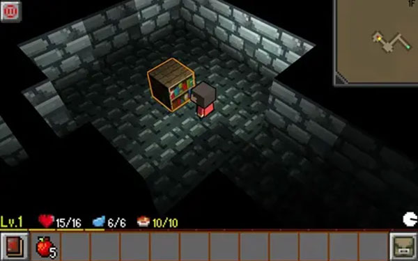 6、地牢房间内还会有些道具箱,里面可能有补血药,或是装备,或是一次性物品等,玩家可以攻击木箱来收集道具。