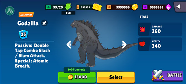 2、多种泰坦怪兽角色任君选择,著名的哥斯拉或金刚都在这游戏,还有许多意想不到的怪兽。