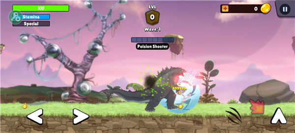 4、当敌方怪兽出现时,点击右下角的攻击键,消灭它们。