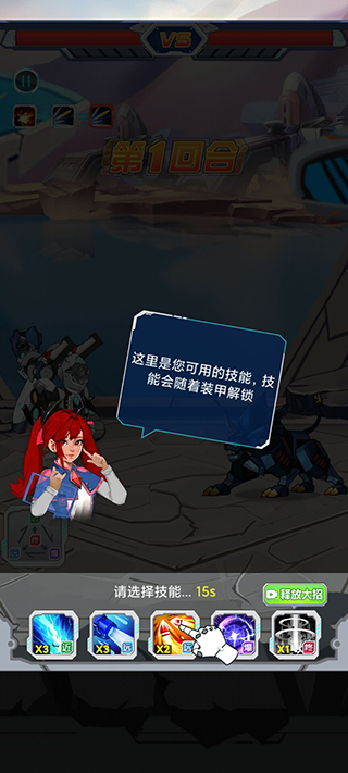 3、玩家可以使用画面下方的技能,技能会随着英雄携带的装甲进行解锁。