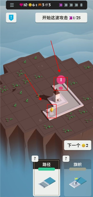 6、玩家点击旁边的“下一个”,即可选择炮台将其放置在防御路线上以便消灭敌人。