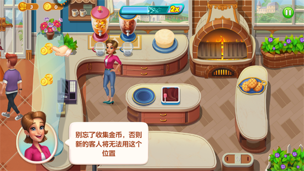 9、订单完成以后要注意收集桌上的金币,不然新的顾客将无法使用这个位置。