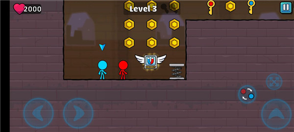 3、玩家们需要帮助红色和蓝色的两个小人来进行闯关。